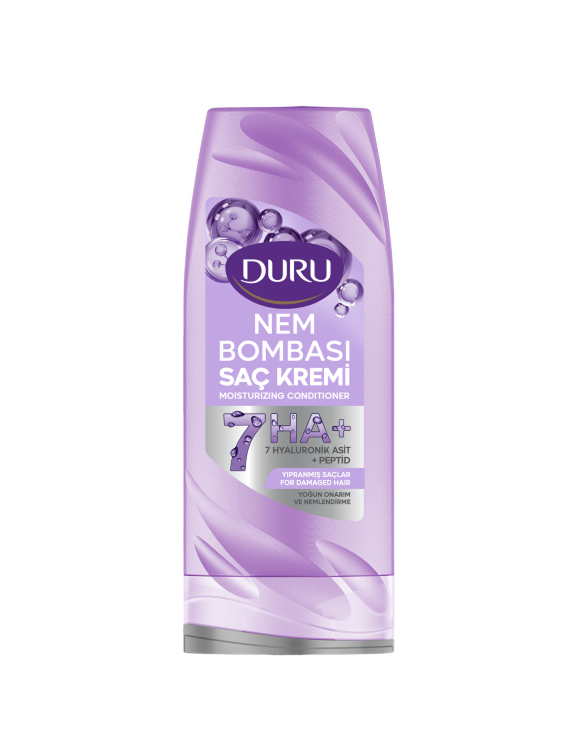 Yeni Duru Nem Bombası saç bakım serisi, farklı boyutlarda 7 Hyalüronik Asit (HA) içeren formülü ile saçın yalnızca yüzeyine değil, her katmanına nüfuz eder ve saçı dipten uca nemlendirir. Saçı ağırlaştırmadan, saç telini nem ile doldurarak bakım yapar. Saçta fark edilebilir koruyucu bir tabaka oluşturur. Yoğun Onarım saç kremi Peptid saçı nemlendirerek güçlendirir ve tekrar yıpranmasını engellemeye yardımcı olur.
