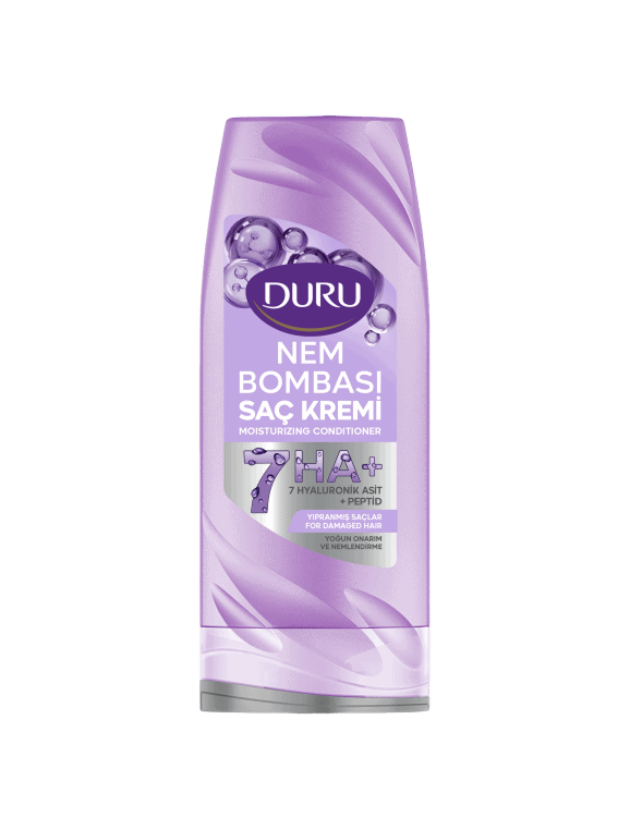 Yeni Duru Nem Bombası saç bakım serisi, farklı boyutlarda 7 Hyalüronik Asit (HA) içeren formülü ile saçın yalnızca yüzeyine değil, her katmanına nüfuz eder ve saçı dipten uca nemlendirir. Saçı ağırlaştırmadan, saç telini nem ile doldurarak bakım yapar. Saçta fark edilebilir koruyucu bir tabaka oluşturur. Yoğun Onarım saç kremi Peptid saçı nemlendirerek güçlendirir ve tekrar yıpranmasını engellemeye yardımcı olur.